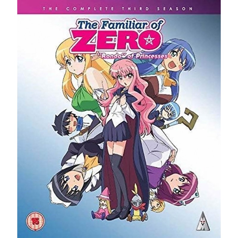 All 12 episodes from the third series of the Japanese anime featuring the voice talents of Rie Kugimiya and Satoshi Hino. The story follows Louise (Kugimiya), a young girl who tries but fails to perform successful magic. Nicknamed 'Zero Louise' by children at her school, she is forced by her peers to use a special ritual to summon a familiar, an eternal protector and partner in the world of magic. In this series, Louise and Saito (Hino) have made the ultimate commitment to each other by getting married. However, when the bond that connected them as master and familiar is lost Louise worries that Saito will leave her.